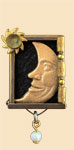 This pin is where the name "Shadowbox" originated more than 20 years ago. An antiqued brass box features handmade image buttons, stamped word bars and vintage stones. The main rectangle measures 3/4" by 1" by 1/4" deep and comes gift boxed with artist info card enclosed.